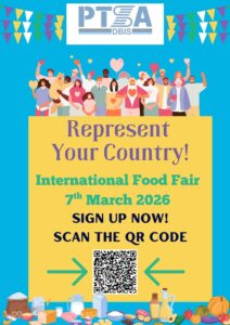 This is the PTSA’s biggest fundraiser of the year. People from the DB community and everyone at school come together to host a fun day with traditional food from home countries, games and activities for the children, and music and performances from students, staff and the DB community.